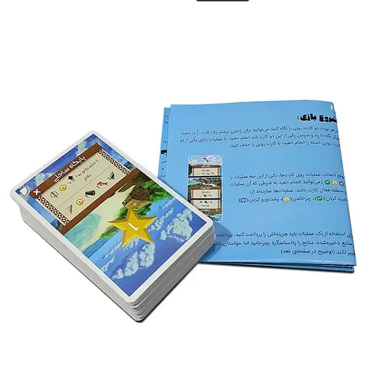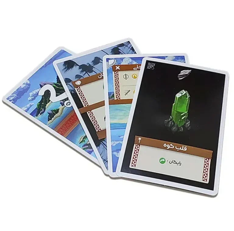 کارتهای بردگیم جزیره پالم Palm Island : بازی شامل کارتهای مختلف است که هر کدام ویژگی خاصی دارند. این کارتها به شما کمک میکنند تا منابع جمعآوری کنید و جزیرهتان را توسعه دهید.