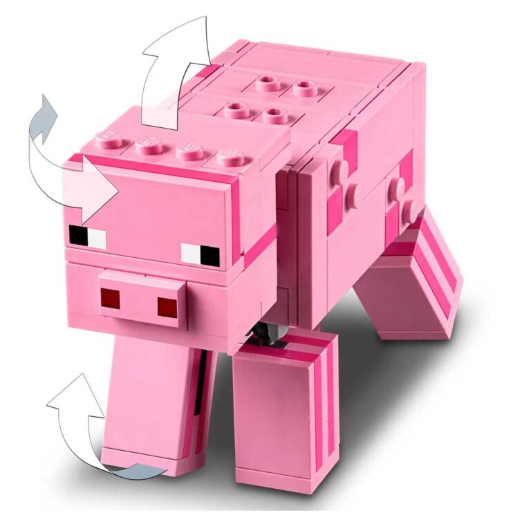 خوک: در بازی ماینکرافت، خوکها موجودات مفیدی هستند که میتوانند به عنوان حیوانات خانگی یا حتی وسیله نقلیه با استفاده از سوار شدن روی آنها مورد استفاده قرار گیرند. در این مجموعه، خوک نیز به خوبی طراحی شده است.