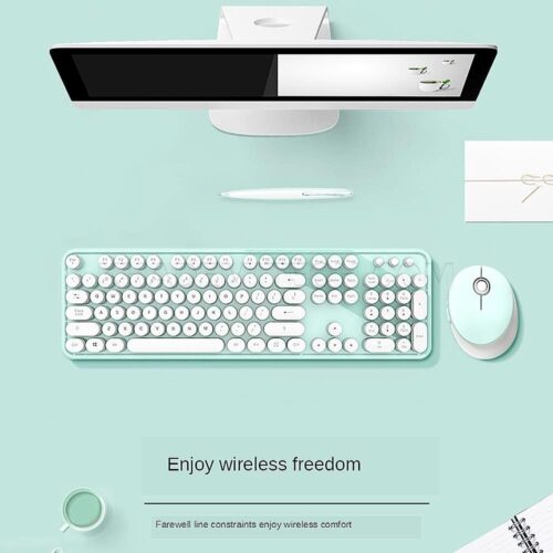 کیبورد و ماوس بیسیم مافی مدل SWEET PURE – سبز سفید | ست فانتزی، زیبا و کاربردی